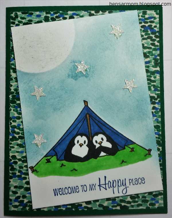 A moment from my day: Here is a card I made for a challenge where you needed to include something you'd see when camping. This is a stamp set from The Cat's Pajamas called, Under the Stars. I'm thinking this greeting could be used with many things.