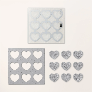The designer paper is the star here with a strip of gold paper, a sentiment and of course the hearts that were cut and embossed at the same time with the hybrid embossing folder.